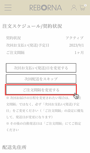また、お届け間隔は変更せずに、次回ご購入日だけを変更することもできます。