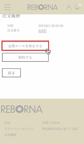 - REBORNA公式オンラインストアの「定期購入」では、ご注文いただいたその日から商品価格が通常の最大30%OFFとなり、定期的にお手元にお届けするシステムです。「最低◯回以上ご利用ください」といった制約もなくお客様のご指定の間隔で、定期的に商品をお届けします。いつでも変更・休止・解約が可能です(1回のみのご購入でも解約が可能です)。継続してご使用いただける方におすすめです。